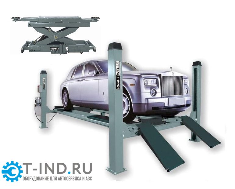 1. Подъемник четырехстоечный 5,5 тонн KraftWell KRW5.5WA, электрогидравлический, для сход-развала, 380В