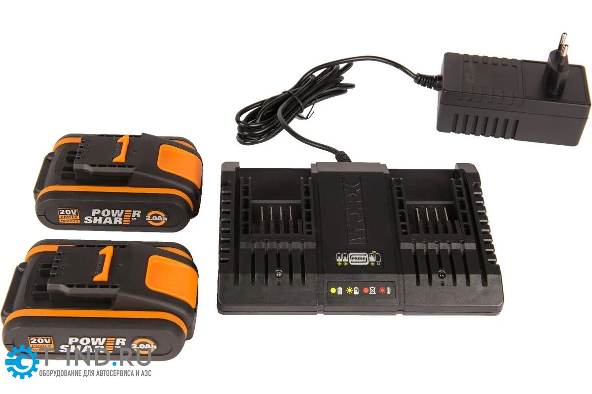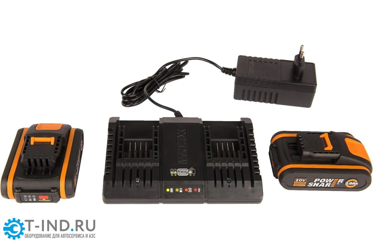 Комплект двойное зарядное устройство WORX WA3869 + 2 АКБ 2.0 А/ч