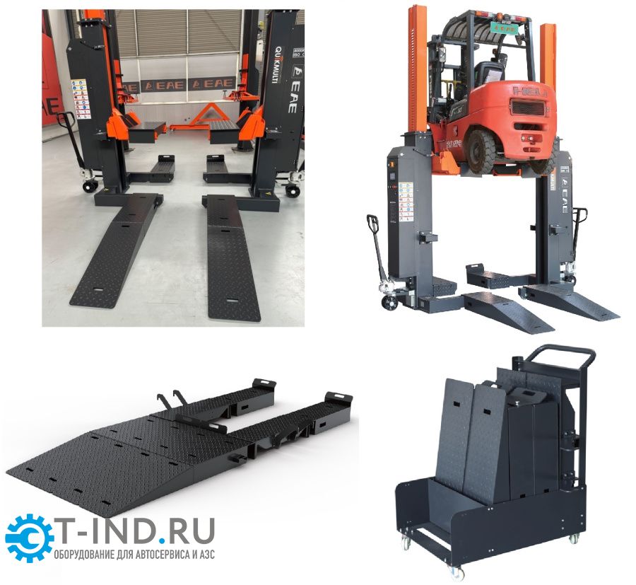 Комплект кронштейнов подхвата с заездными трапами и пандусами для подъема вилочных погрузчиков. Опция для подкатных колонн EE-HDM8х.