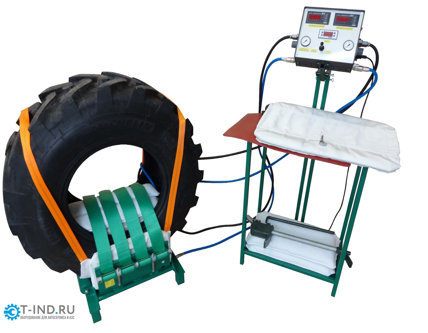 Состоит из протекторных подушек, обладающих высокой теплопроводностью, и накидки для удержания подушек и нагревательного элемента от смещения при установке шины на вулканизатор.