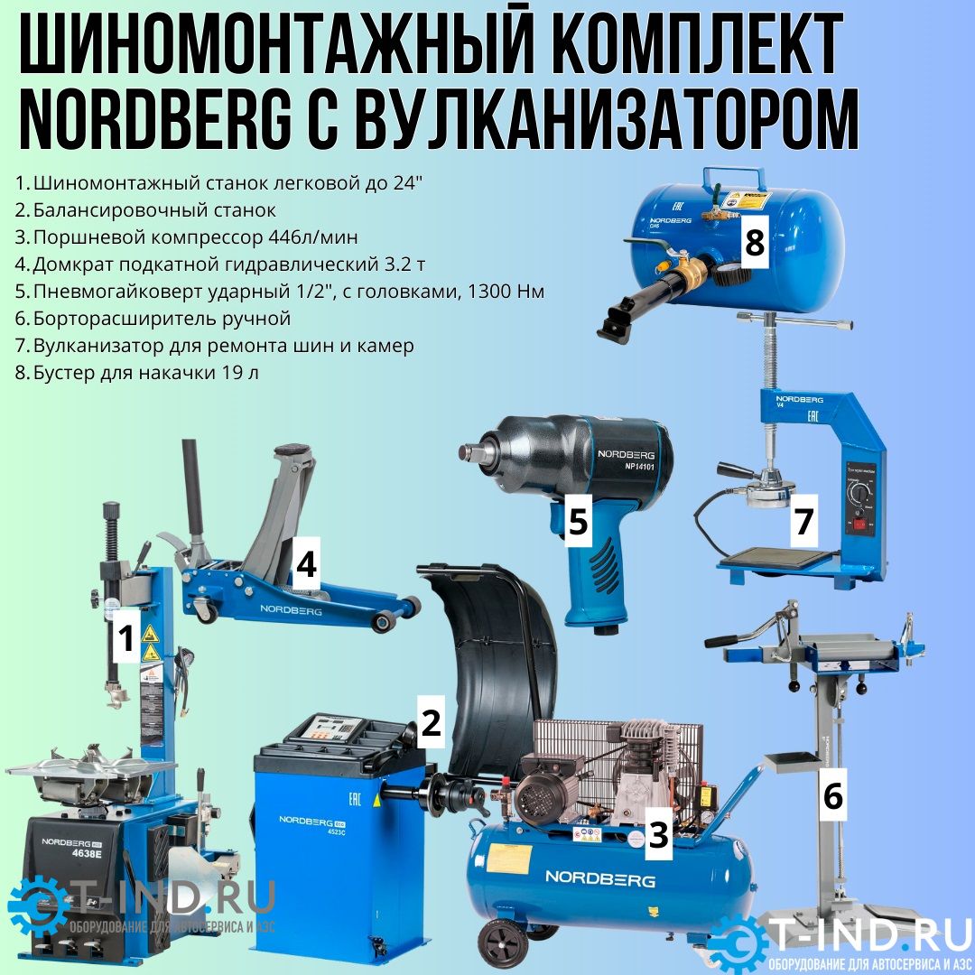 ★ Оптимальный комплект NORDBERG полуавтоматический с вулканизатором и борторасширителем для небольшого шиномонтажа ★