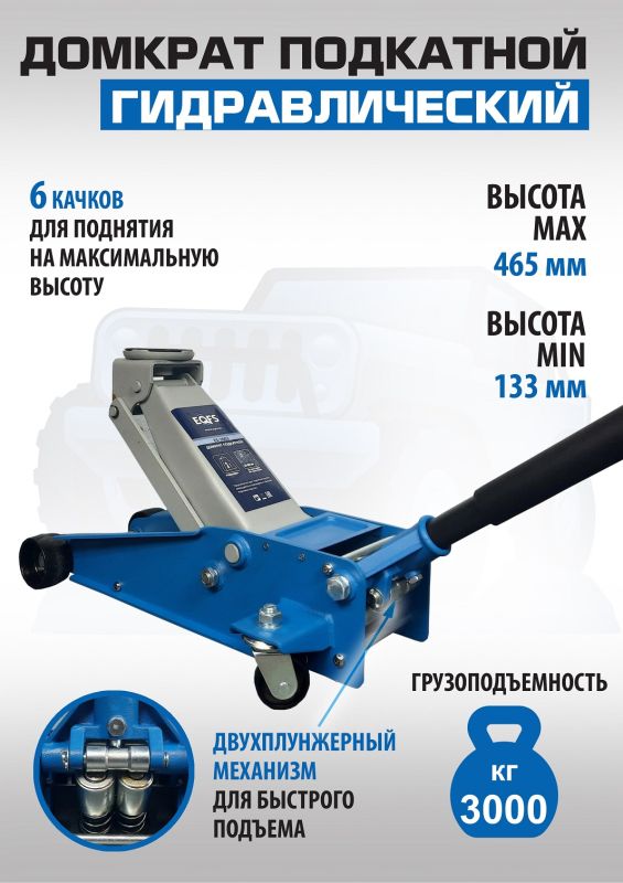 - Домкрат подкатной гидравлический 3 тонны EQFS ES-3003, автомобильный - 1шт.