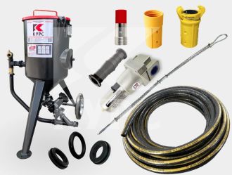 Комплекты собираются на базе пескоструйного аппарата напорного типа объемом загрузки 25 литров. К «бочке» добавляется все необходимые комплектующие — одной доставкой приходит и аппарат, и комплектующие к нему — ничего больше не нужно будет докупать, поэтому можно сразу приступить к работе. Кроме того, аппарат вместе с комплектующими выйдет дешевле, чем каждая товарная позиция комплекта по отдельности.