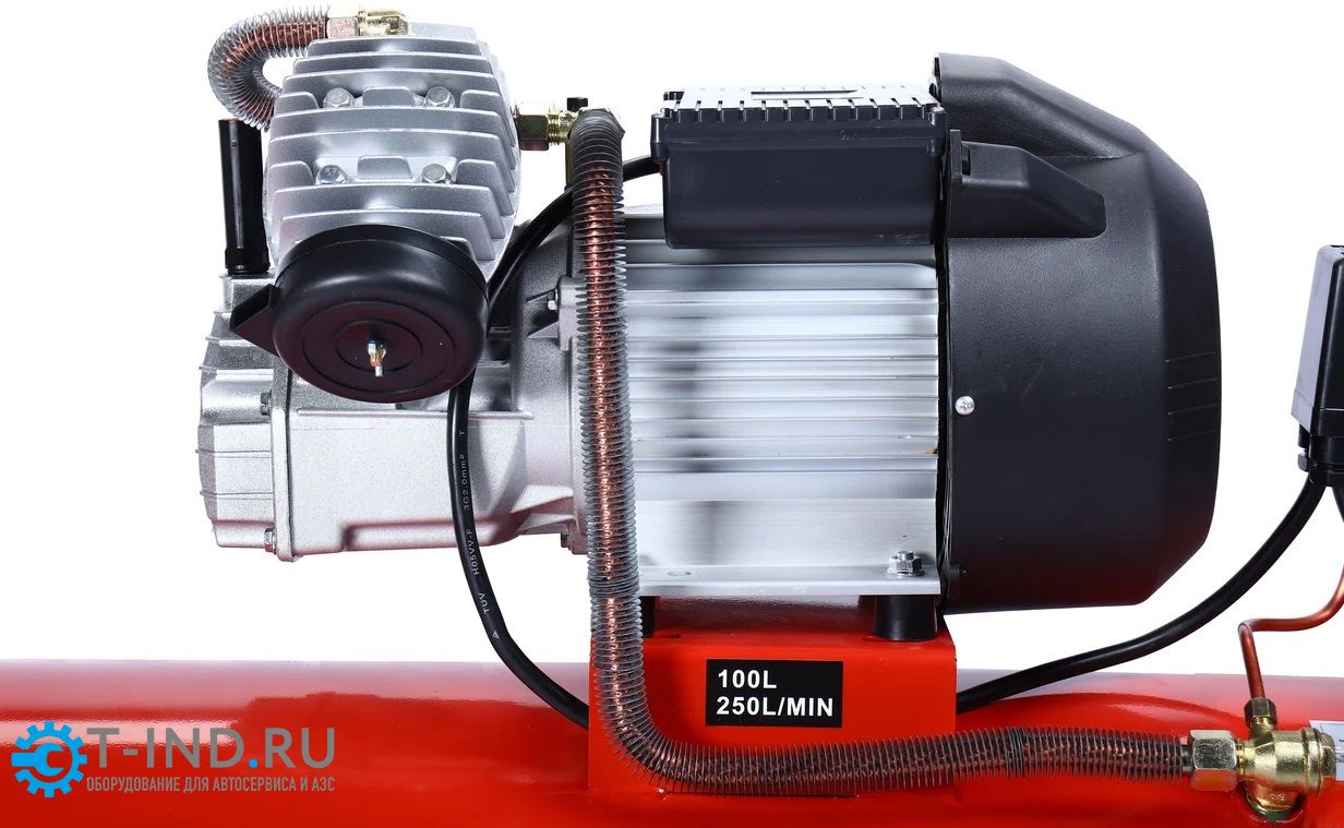 - Компрессор поршневой с прямым приводом, V-образный, 220В, ресивер 100 л, 250 л/мин;