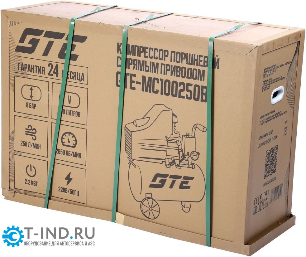 Поршневой компрессор GTE GTE-MC100250B, прямой V-обр., 250л/мин, 100л, 220В