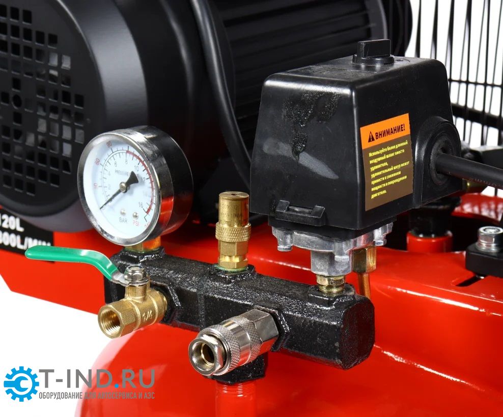 - Компрессор вертикальный поршневой с ременным приводом 220В, ресивер 120 л, 300 л/мин;
