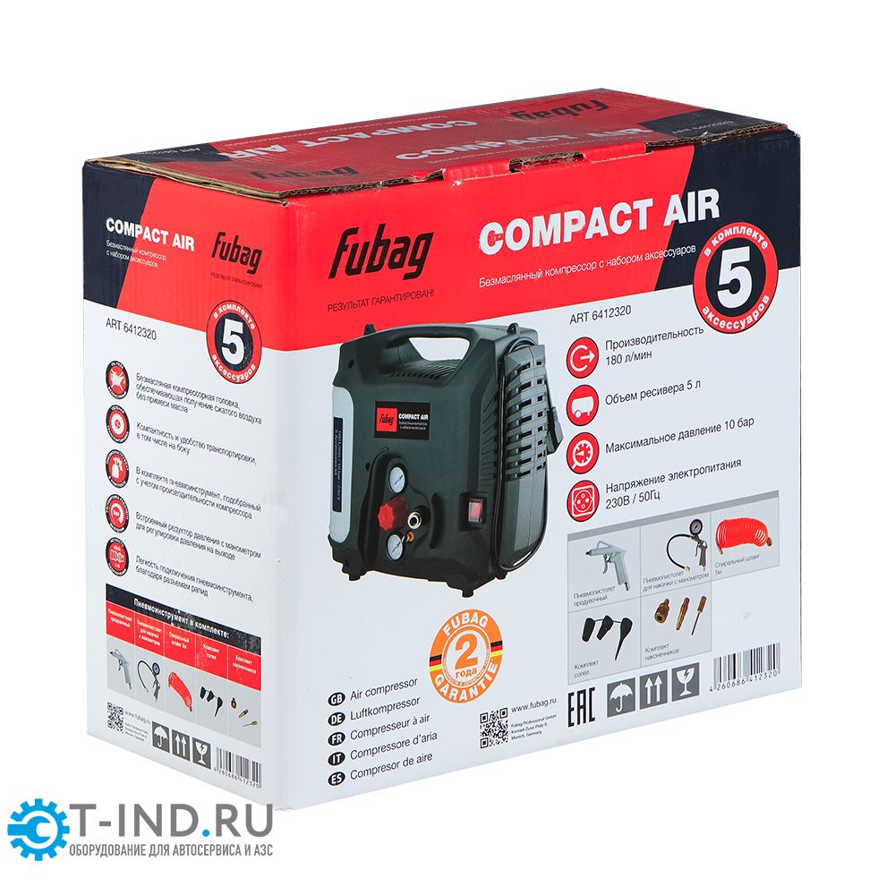 Компрессорный набор Fubag Compact Air, прямой безмасляный 220В, 180 л/мин, + 5 предметов