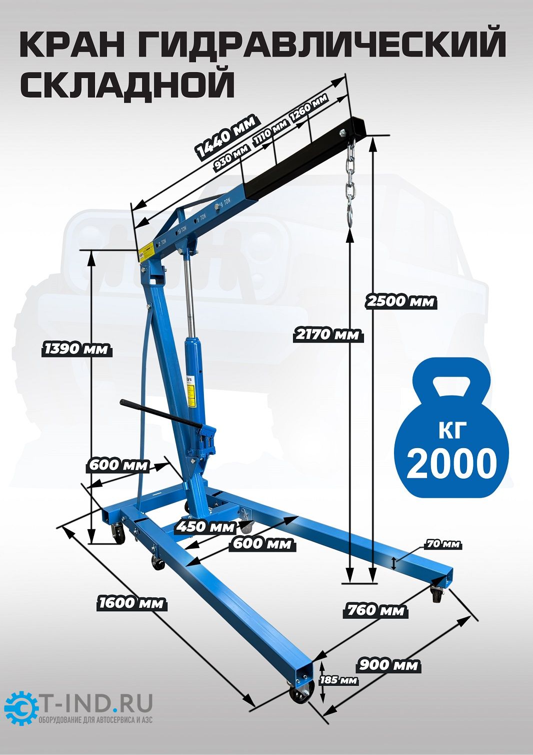 - Кран гаражный складного типа, что позволит сэкономить место Вашего цеха. Нижние лапы складываются. В сложенном состоянии не более 0,5кв.м.