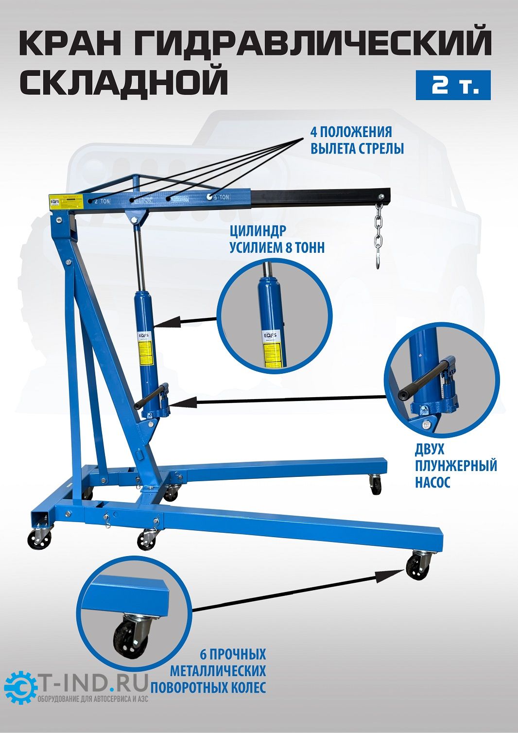 Кран гидравлический складной 2 т EQFS ES0601B, передвижной, гаражный
