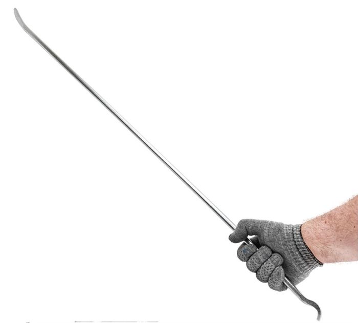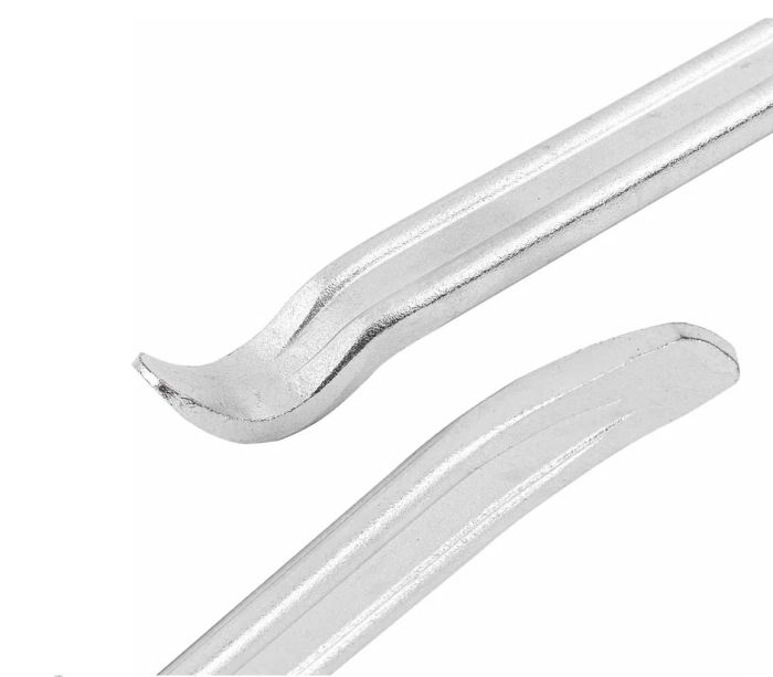 Обеспечивает возможность демонтировать части конструкции или снимать автомобильные шины с дисков. Специальный изгиб позволяет работать с большим рычагом при меньших усилиях.
