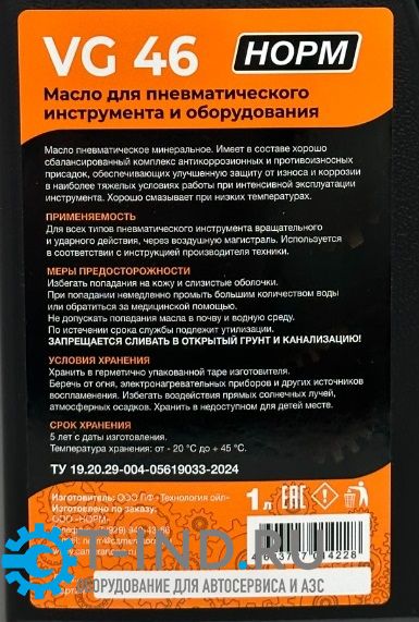 Масло для пневмоинструмента VG 46 НОРМ 14-646, 1л