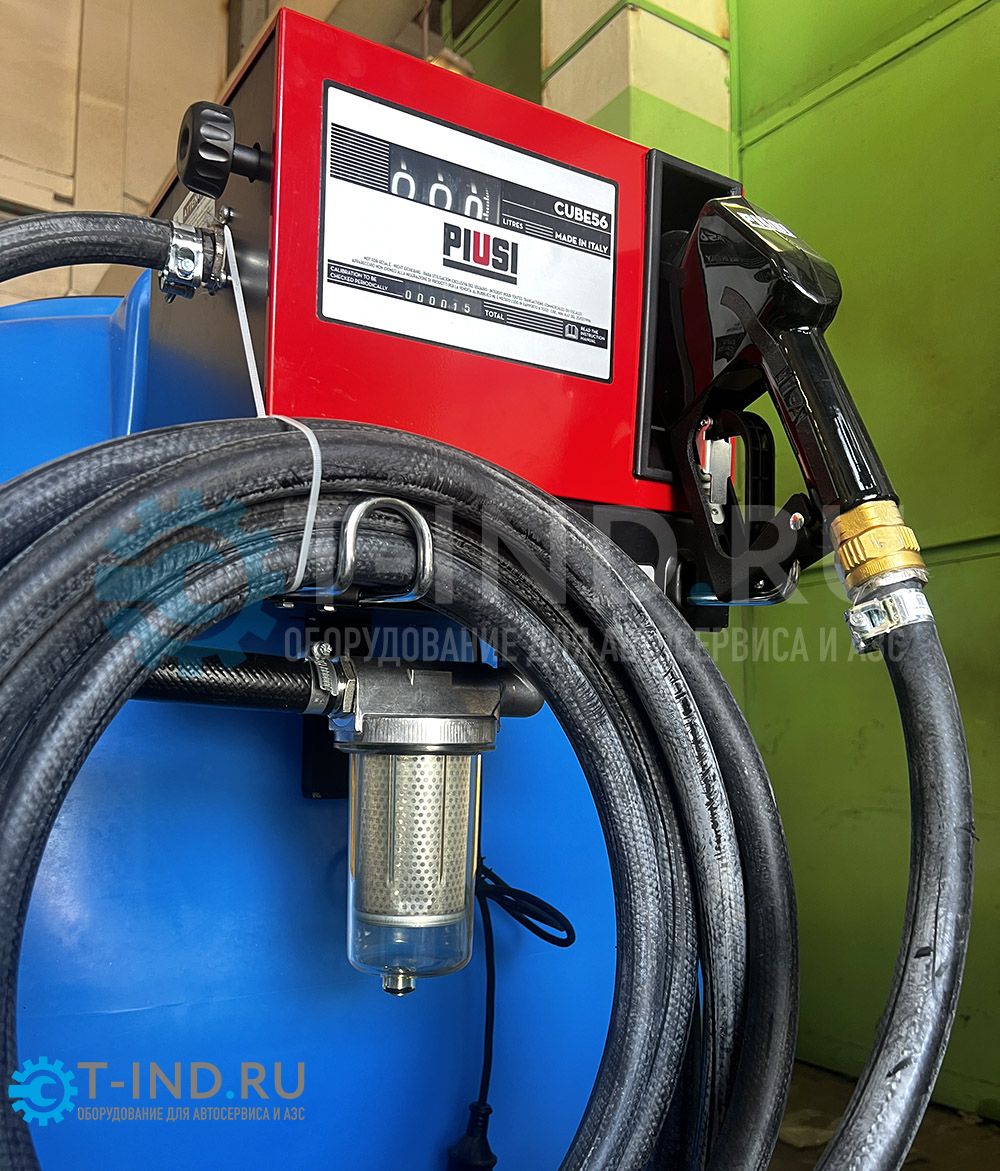 Электрическая помпа. Счетчик-расходомер для учета отпускаемого топлива. Рукав топливораздаточный 4 м. Кран топливораздаточный. Наливная горловина. Нижний шаровый кран для слива.