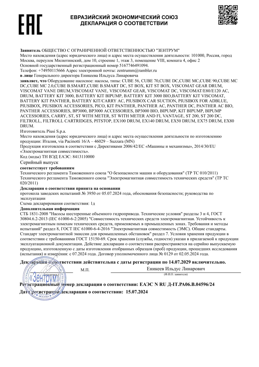Мобильная топливораздаточная колонка Piusi Cube 56/33+Filter, для дизеля, 220В, 56 л/мин