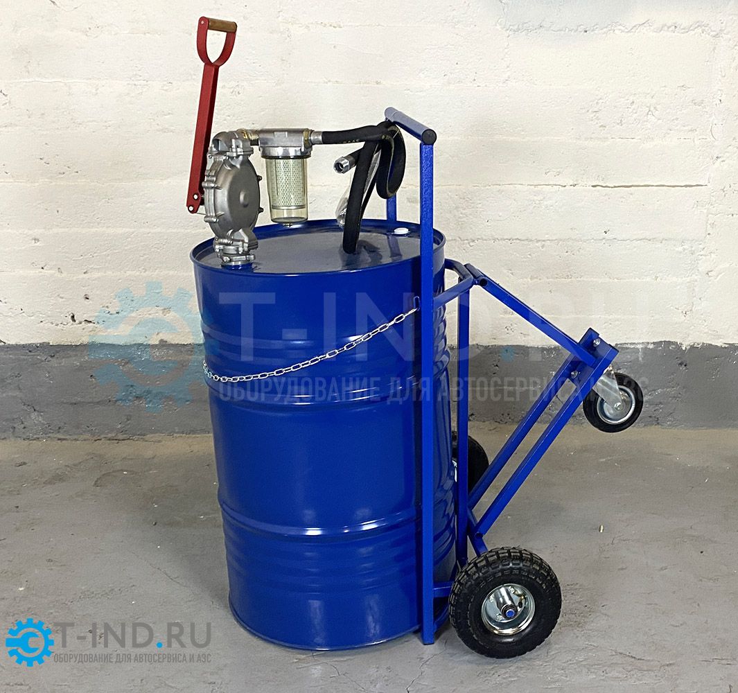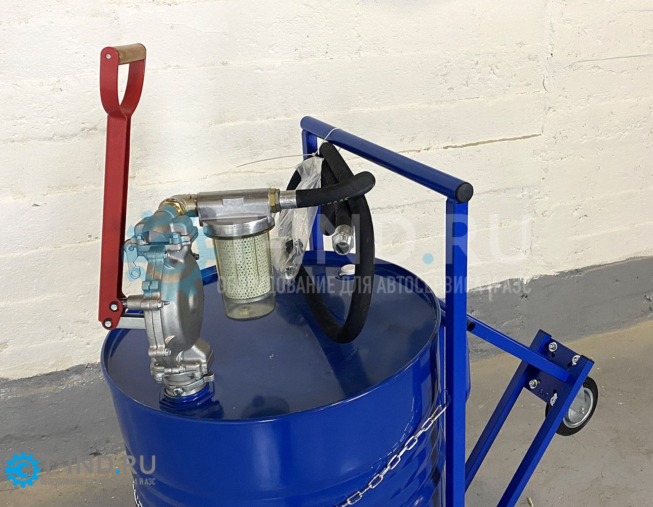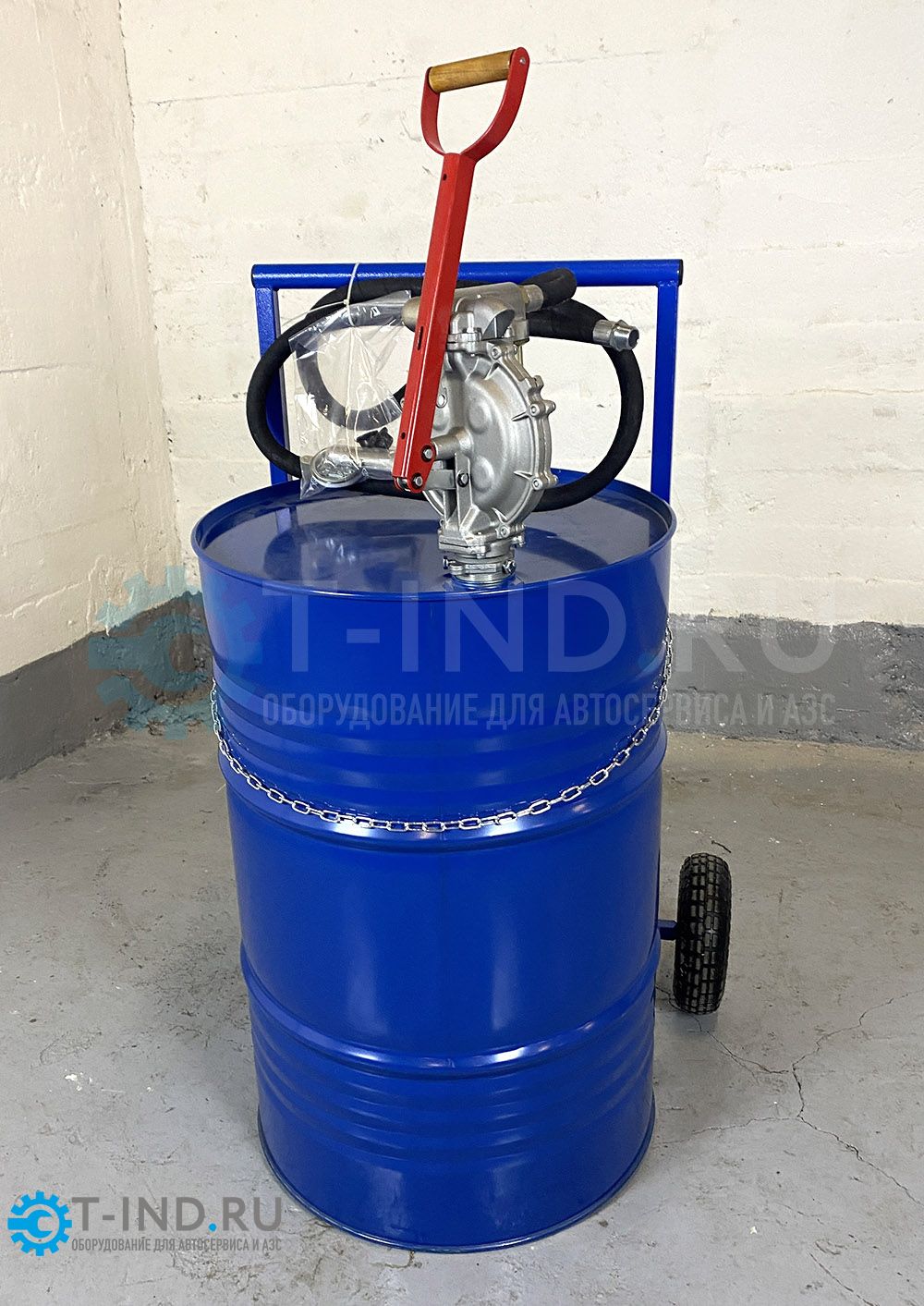 Передвижной комплект для заправки бензином, дизтопливом, спиртом из бочки. Разработан специально для применения в особых условиях. Комплекс не требует подключения к электропитанию или сжатому воздуху. Перекачка осуществлляется ручным насосом Gespasa 1л/ход. Скорость перекачки до 30л/мин.
