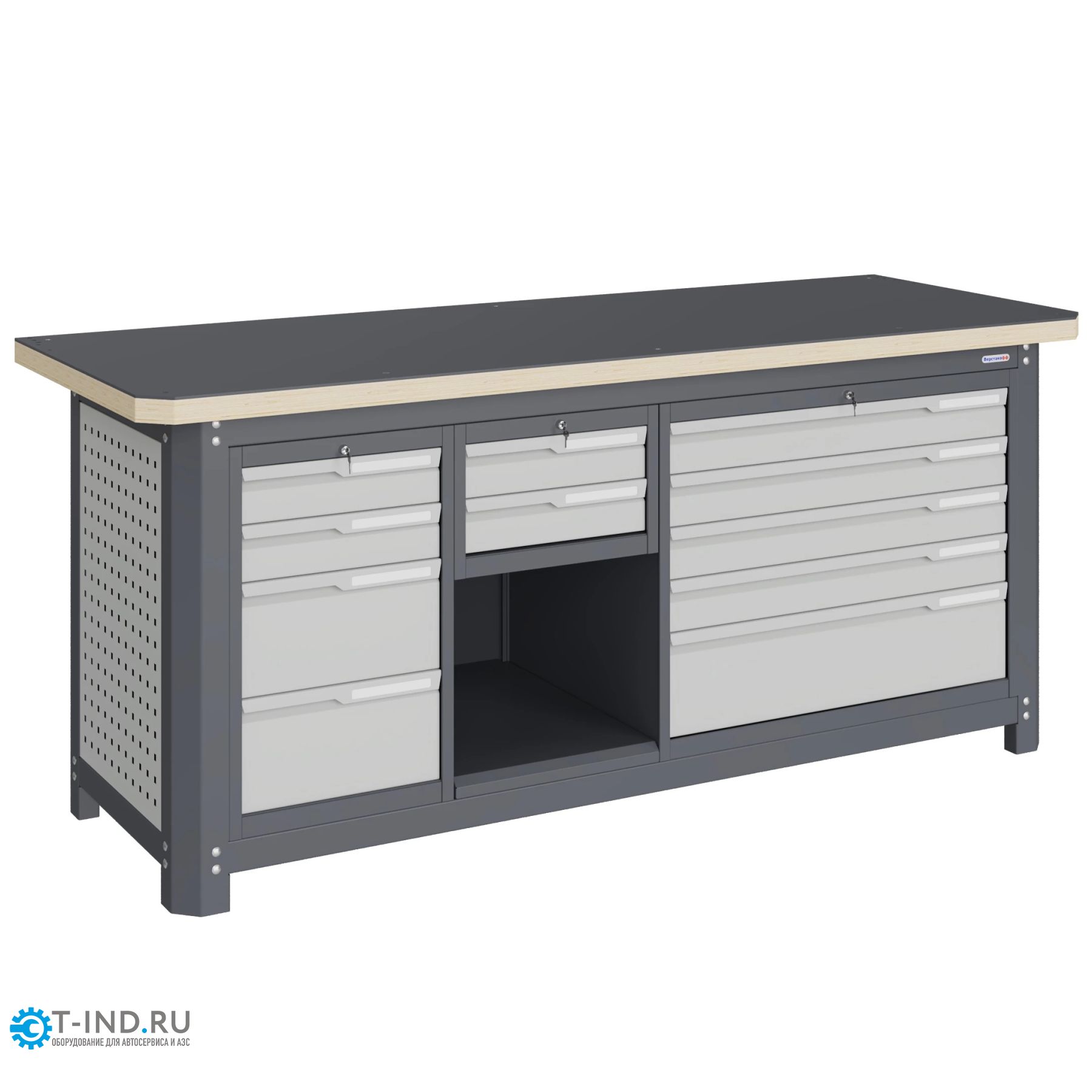 столешницы шириной 1993 мм, рамы верстака, состоящей из опор, перемычек, боковых перфопанелей, малого подвесного модуля S2, малого модуля S4, большого модуля L5, комплекта полка-стенка SW2.