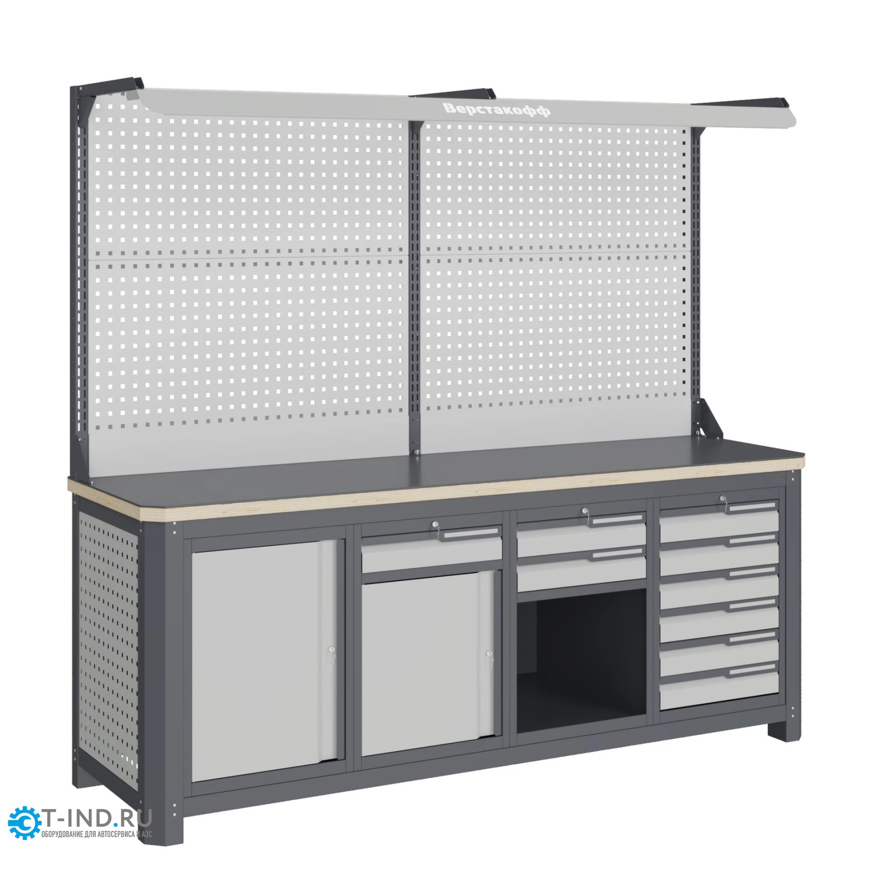Модульный верстак Верстакофф MCN 2052.S2678.2-2F, 4 тумбы, 1+2+6 ящиков, с дв. экраном, подсветка