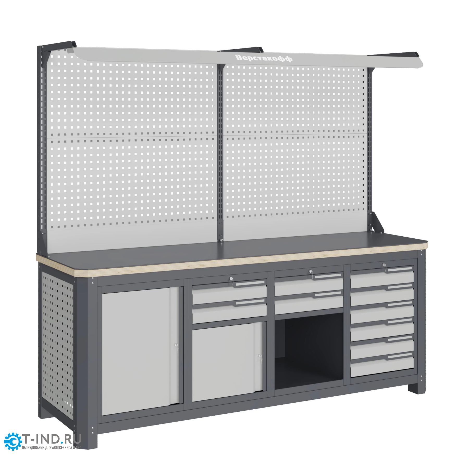Модульный верстак Верстакофф MCN 2052.S2679.2-2F, 4 тумбы, 2+2+6 ящиков, с дв. экраном, подсветка