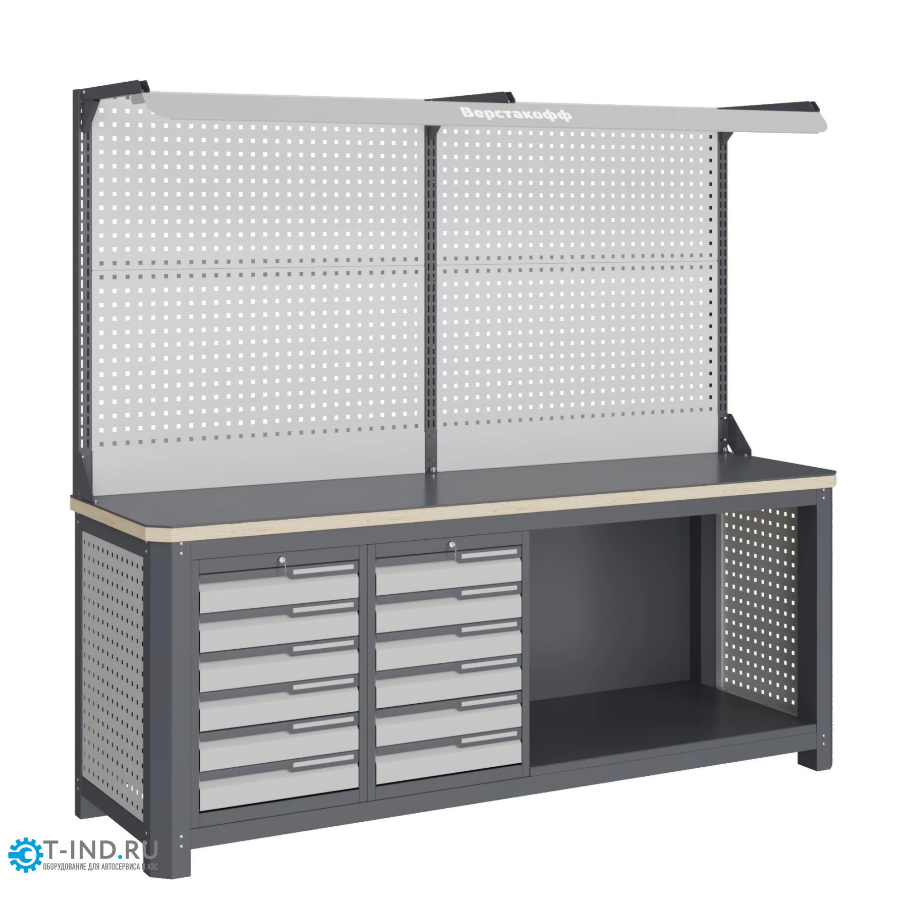 Модульный верстак Верстакофф MCN 2052.S66.11-2F, 2 тумбы, 6+6 ящиков, с дв. экраном, подсветка