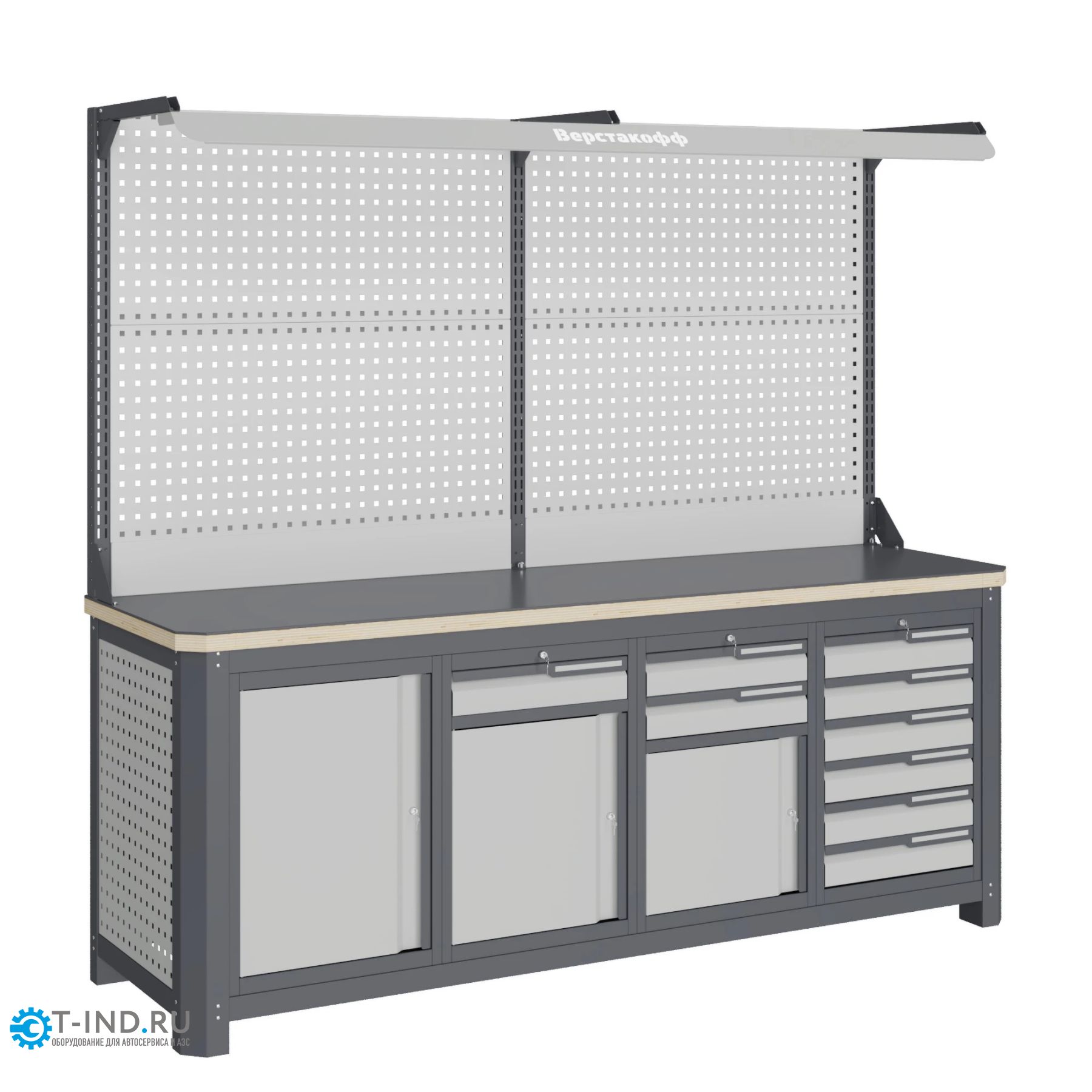 Модульный верстак Верстакофф MCN 2052.S6789-2F, 4 тумбы, 1+2+6 ящиков, с дв. экраном, подсветка