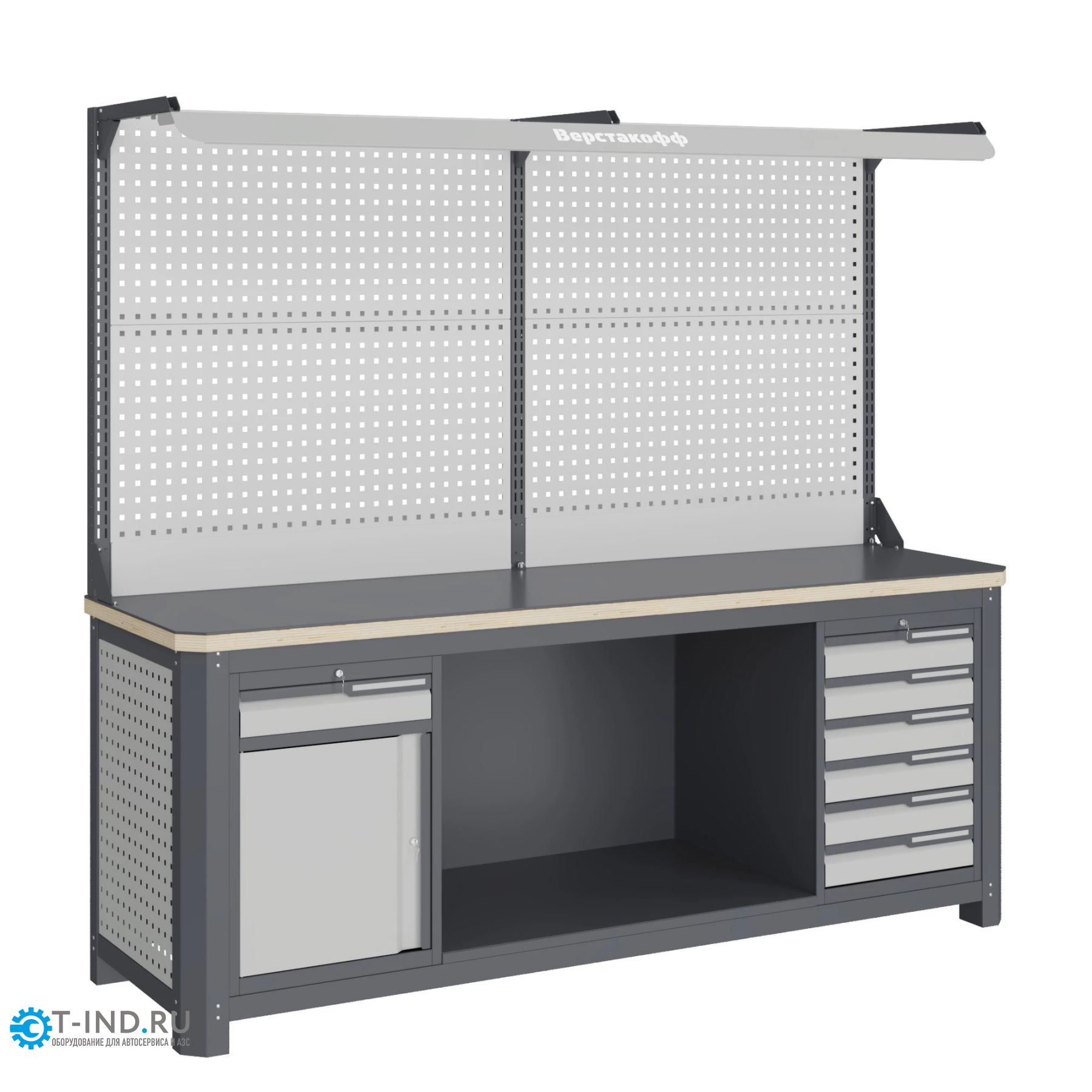 Модульный верстак Верстакофф MCN 2052.S68.11-2F, 2 тумбы, 1+6 ящиков, с дв. экраном, подсветка