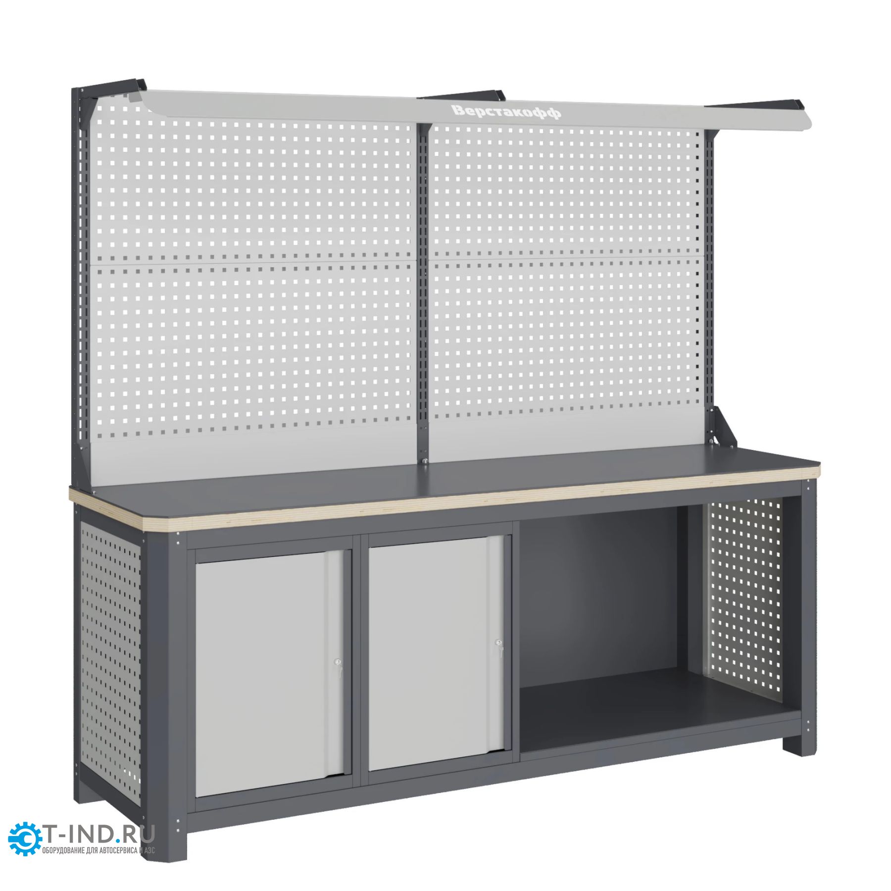 Модульный верстак Верстакофф MCN 2052.S77.11-2F, 2 тумбы с дверцами, с дв. экраном, подсветка