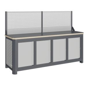 Предназначен для выполнения сборочных, ремонтных, слесарных, монтажных и других видов работ на производстве, в сервисных центрах, мастерских, гаражах. Рама верстака выполнена их холоднокатаной стали. Опоры допускают частичную регулировку по высоте для компенсации неровности пола. Все металлические элементы покрыты полиэфирной порошковой краской, обеспечивающей хорошую износостойкость покрытия и невосприимчивость его к моющим средствам и смазочным веществам. Верстак имеет декларацию соответствия ТР ТС 025/2012 «О безопасности мебельной продукции».