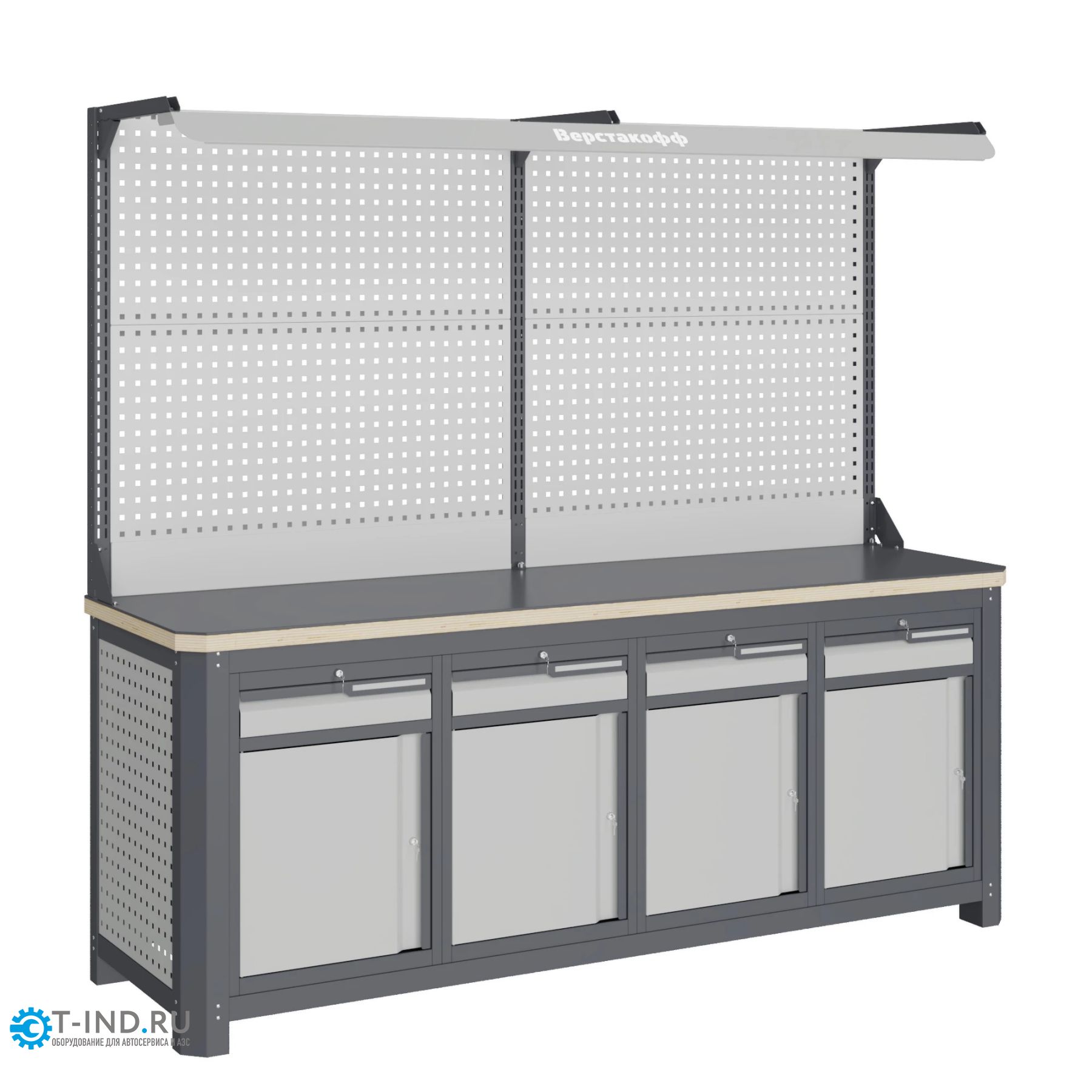 Модульный верстак Верстакофф MCN 2052.S8888-2F, 4 тумбы, 4 ящика, с дв. экраном, подсветка
