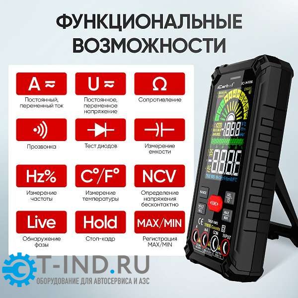 С помощью смарт мультиметра IC-M116 вы сможете измерить: