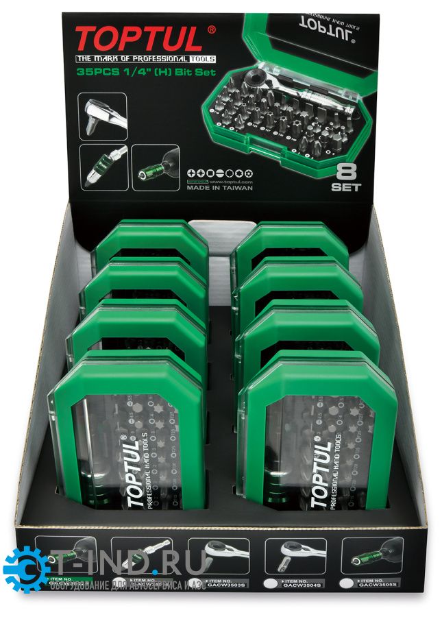 Набор бит 1/4" с трещоткой 35 пр. Display Box (8 комплектов) TOPTUL