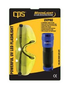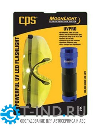 UV набор для поиска утечек CPS UVPRO предназначен для поиска утечек хладагента, с предварительно введенным в систему ультрафиолетовым индикатором, в лучах ультрафиолетового спектра. Ультрафиолетовый фонарик с ультрафиолетовым излучением питанием от 3х батареек типа ААА. На ультрафиолетовом фонарике имеется кнопка периодического включения. Специализированные очки, защищающие глаза от ультрафиолетового спектра. При помощи данного набора можно оперативно определите локальное место утечки хладагента с предварительно введенным в систему ультрафиолетовым индикатором.