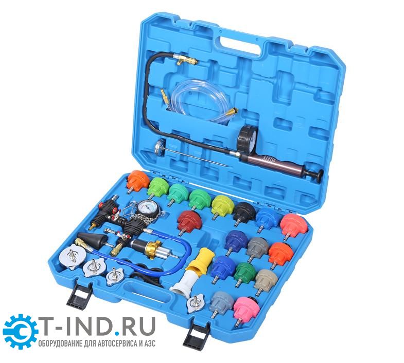 - Позволяет выявлять утечки в системе охлаждения за счет создания давления до 2,5 бар. Это помогает обнаружить даже скрытые повреждения, такие как дефекты прокладки головки блока цилиндров;