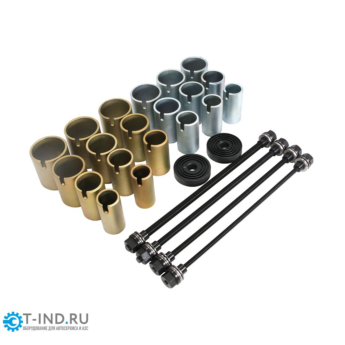 Универсальный набор используется для снятия и установки подшипников, подшипников с резиновой втулкой, сайлентблоков, втулок. Подходит для большинства автомобилей.