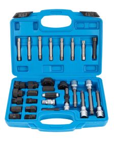 Набор для генераторов и обгонных муфт состоит из 30 предметов предназначенных для монтажа / демонтажа всех типов шкивов свободного хода Bosch и Denso. Подходит для большинства автомобилей, в том числе: VW, Audi, Seat, Mercedes, Renault, BMW, Ford, Fiat., Toyota и многих других.