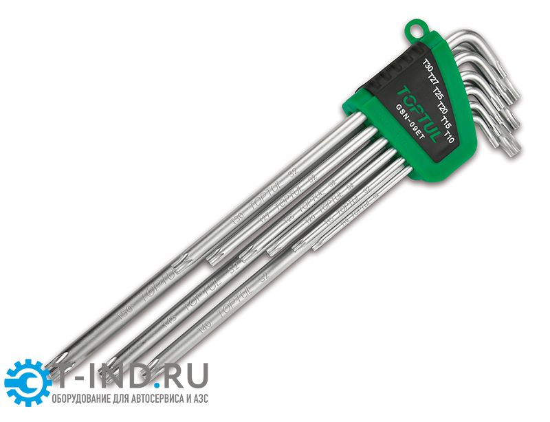 Набор Г-образных ключей TORX T10-T50 экстрадлинные с отверстием, 9 пр. TOPTUL GSN-09ET