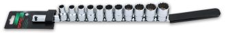 Набор головок 1/2" 12-гранных 10-22 мм, 11 предметов, на планке TOPTUL