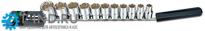 Набор головок 1/2" 12-гранных дюймовых 3/8"-1", 11 предметов на планке TOPTUL