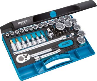 Набор торцевых головок 1/2" 6-гр., из 44 предметов. в пластиковом чемодане и пенополиуретановом ложементе.