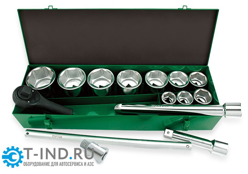 Набор головок и аксессуаров 1" 6-гранных 36-80 мм, 14 предметов в метал.кейсе TOPTUL
