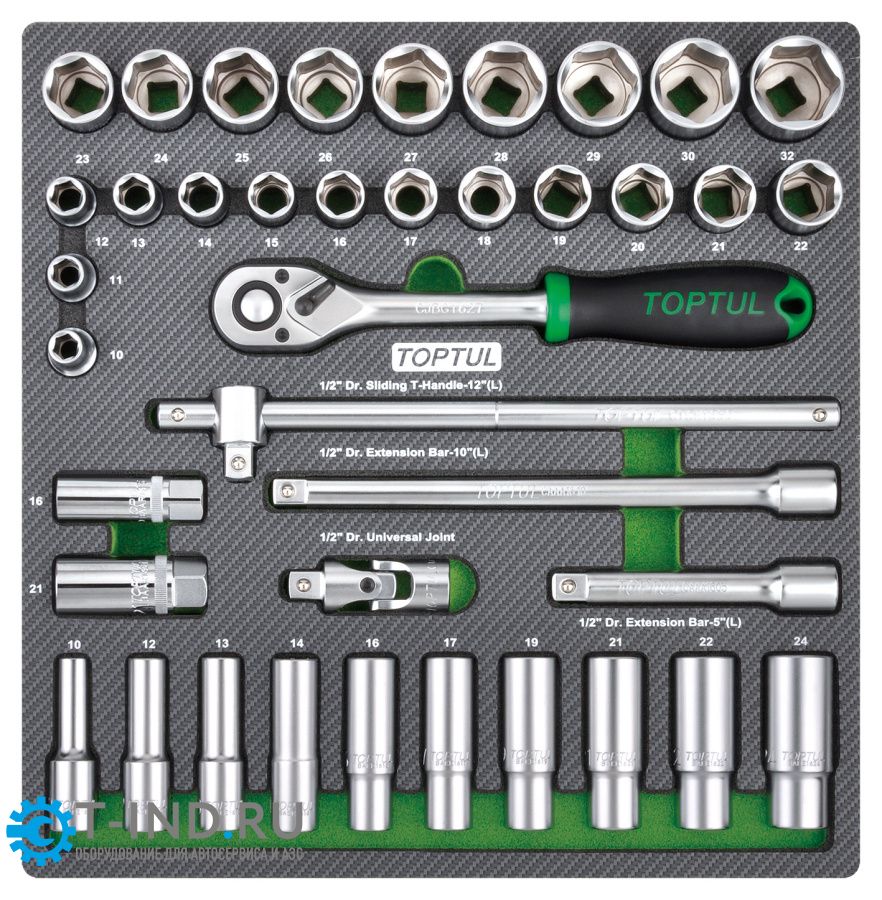 Набор головок и аксессуаров 1/2", 39пр. в мягком ложементе TOPTUL