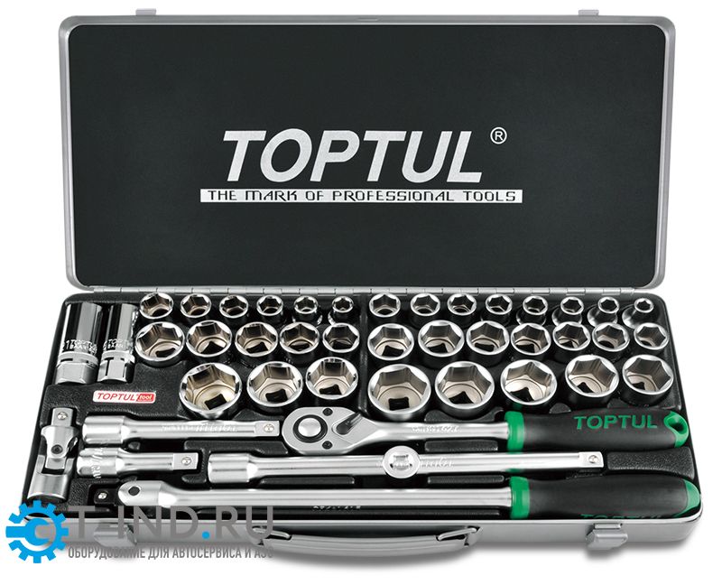 Набор головок и аксессуаров 1/2" 6-гранных 8-32 мм, 43 предмета в метал. кейс TOPTUL GCAD4303