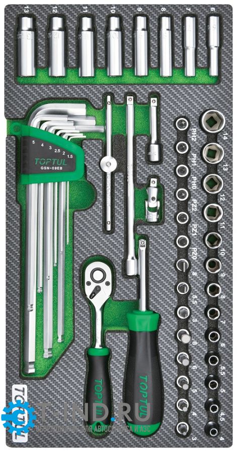Набор головок и аксессуаров 1/4", 50 пр. в мягком ложементе TOPTUL