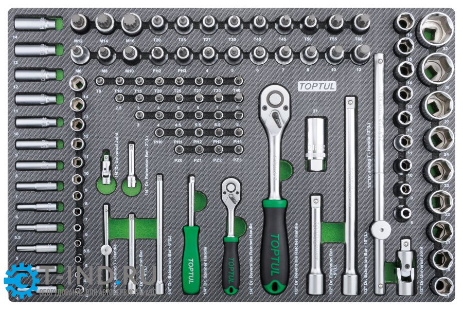 Набор головок и аксессуаров 1/2"и 1/4" 6гр.,111пр. в мягком ложементе TOPTUL