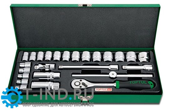 Набор головок и аксессуаров 3/8" 12-гранных 6-24 мм, 25 предметов в метал. кейсе TOPTUL