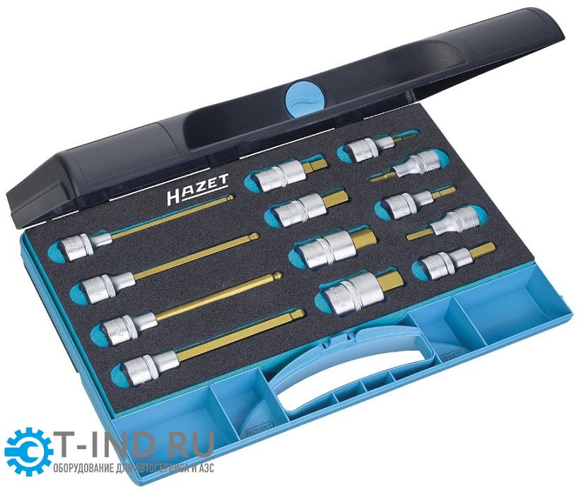 HAZET Набор головок 1/2" с насадкой шестигранник от 5 до 19 мм, 13 предметов.