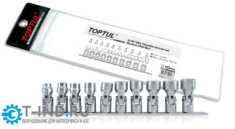 Набор головок шарнирных 3/8" 12-гранных 10-19 мм, 10 предметов на планке TOPTUL