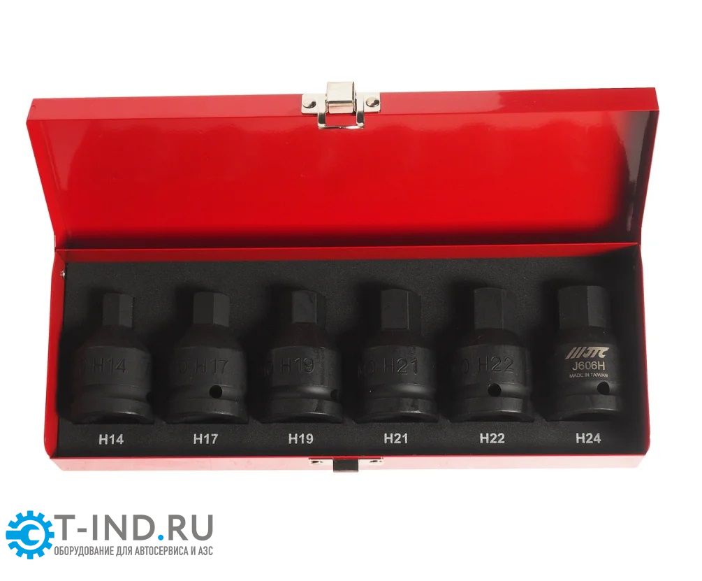 Набор головок ударных JTC-J606H – профессиональный инструмент для работы с крупным HEX шестигранным крепежом. Набор является специализированным решением для профессиональных механиков, работающих с крупногабаритной техникой для ремонта грузового транспорта, там где требуется качественный инструмент для работы с крупным шестигранным крепежом. Специальная конструкция головок обеспечивает долговечность при регулярном использовании с ударным инструментом.
