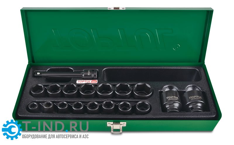 Набор головок ударных 1/2" 10-32 мм, 18 предметов в метал.кейсе TOPTUL