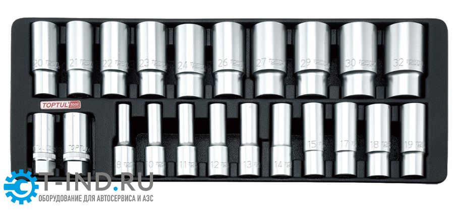 Набор головок удлиненных 1/2" 8-32 мм 23 предмета, в ложементе TOPTUL GAAT2202