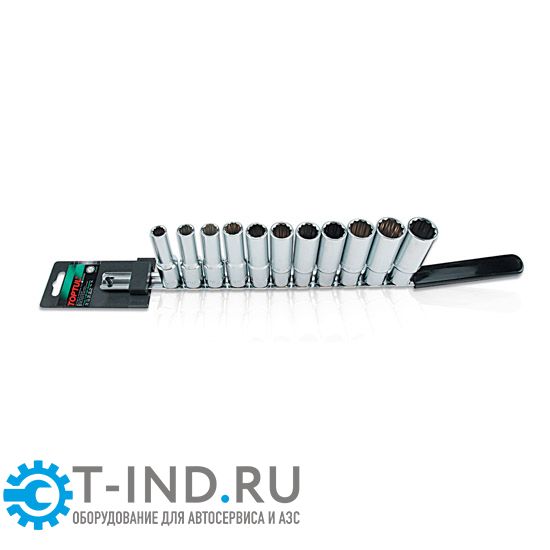 Набор удлиненных 12-гранных головок 1/2" на клип-планке 10-22 мм 11 предметов TOPTUL