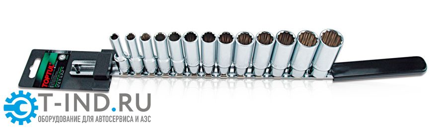 Набор удлиненных 12-гранных головок 3/8" на клип-планке 7-21 мм 13 предметов TOPTUL
